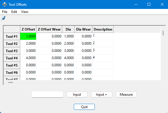 This table can be customized extensively to meet the needs of your system. Please see Tool Offset Table Customization