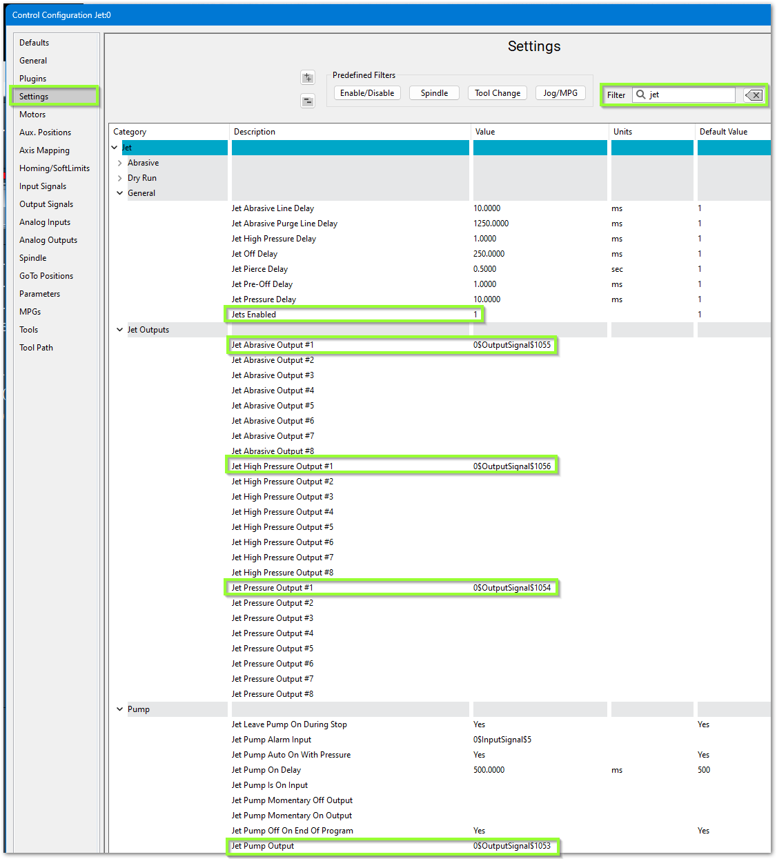 - Jet Pressure Output #1 maps to Jet Pressure On