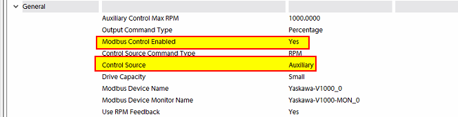 Step 3: This will display the parameters for the Yaskawa VFD V1000. Note that if there are multiple VFDs, then the additional units will be labeled V1000_1, V1000_2, etc.