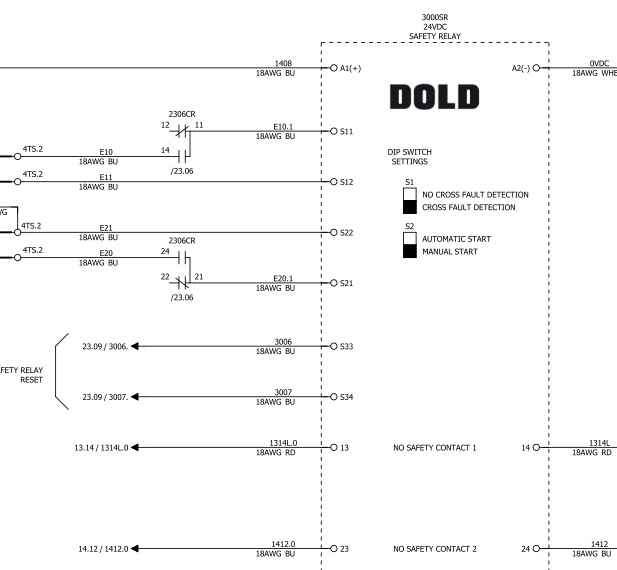 - Confirm S21 and S22 are connected at the safety relay (check for continuity with a multimeter)