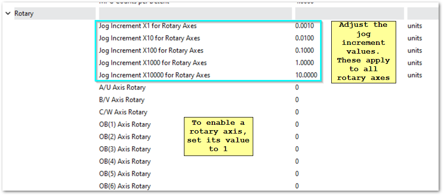 If a position has a 0 then it will not be cycled through the jog increments for on-screen jogging.