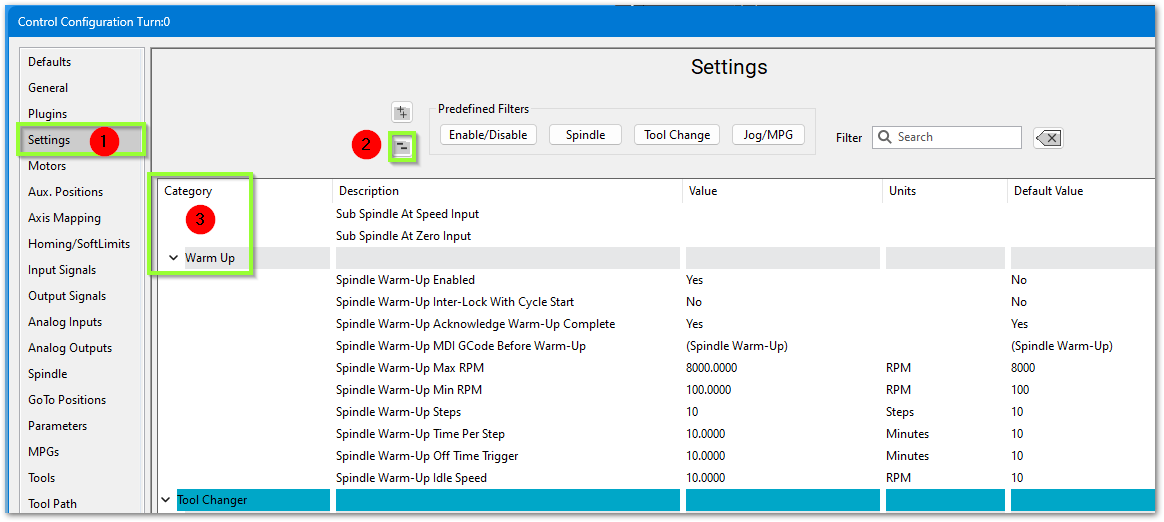 button - Expand the Spindle section and scroll down to the Warm Up portion