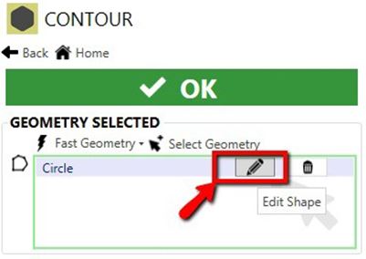 To edit the shape click the pencil icon on related item in geometry list . Alternatively, you can double click in 3D Scene.