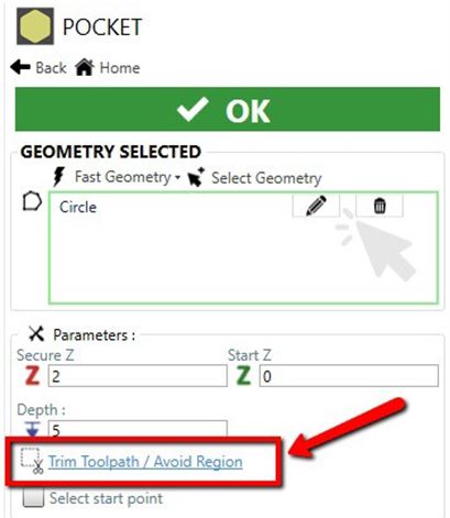 One of the pros of using this type of geometry definition is the ability to edit easily. The associated toolpath will be regenerated automatically.